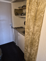Entrée, Kitchenette, pièce de vie, salle d'eau, placard.